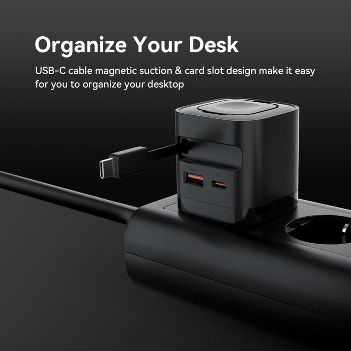 Kiip Wh30 3In1 Adapter Fast Charger Gan 35W Retractable Cable Built In Magnetic Wireless Watch - Hitam
