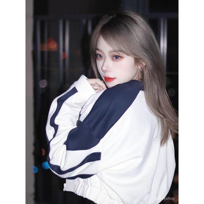 Jaket Croope Wanita - Answer Me Croope Jaket Korean Style Fleece Crop Oversize - White Navy