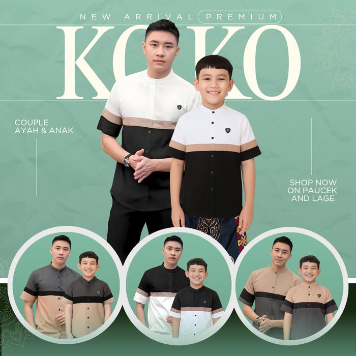 Baju Koko Ayah Dan Anak Cople Premium Lengan Pendek Bang-Kids - Dewasa Hitam, M