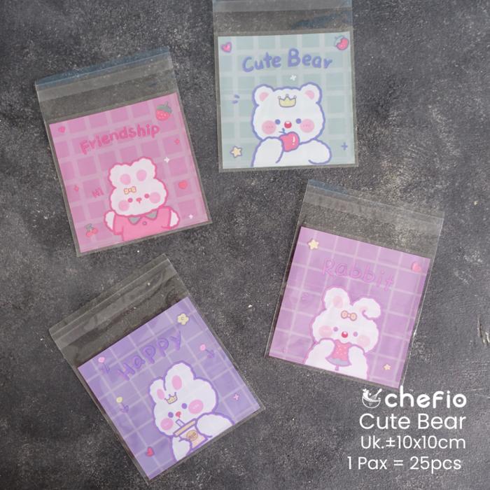 Chefio Plastik Roti Opp Motif Bunga 10X10 Plastik Kue Cake Donat Risol - 10X10 Cute Bear