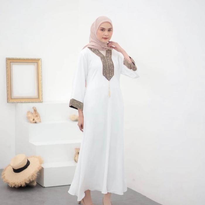 Abaya Turkey Ramisa Abaya Wanita Terbaru 2024 Manik Bordir Gamis Muslim Mewah - Hitam, All Size