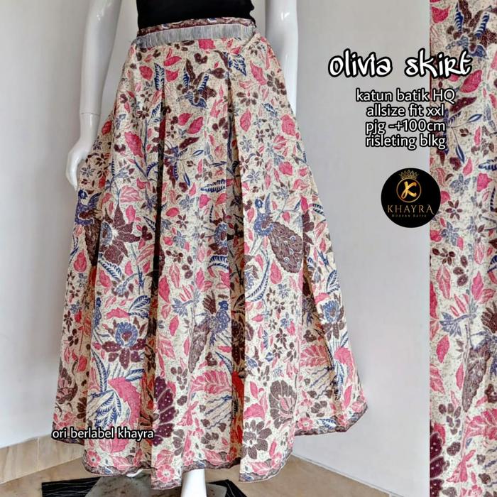 Batik Solo Trendy / Olivia Skirt Daun / Rok Batik Solo Bahan Katun Tebal / Rok Batik Model Klok A - Hitam