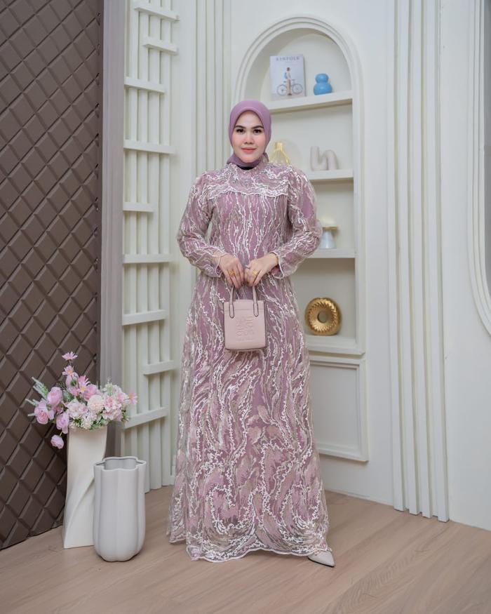 Meera - Alya Dress Brokat Payet | Bahan Full Brokat Mix Tile Mutiara | Dress Kondangan Mewah | Gaun Pesta Mewah | Gaun B