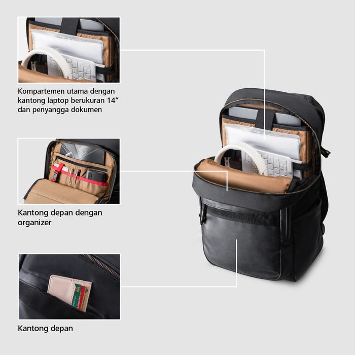 Bodypack Weston 1.0 Laptop Backpack 14 Inch Tas Ransel Kerja Kuliah Sekolah Classic 21 L - Hitam - Hitam