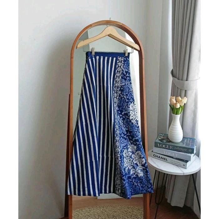Rok Batik Katun Tebal Model Rok Lilit Payung Motif Indigo Batik Cap - 01, All Size