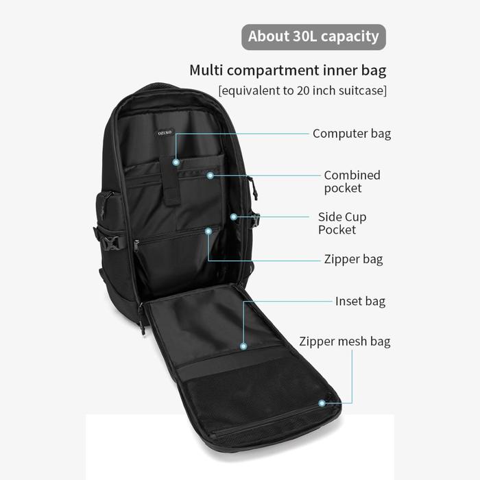 Ozuko Backpack #9588 - Tas Laptop Ransel Travel Mudik Hitam Sekolah Pria Ransel Kuliah - Hitam
