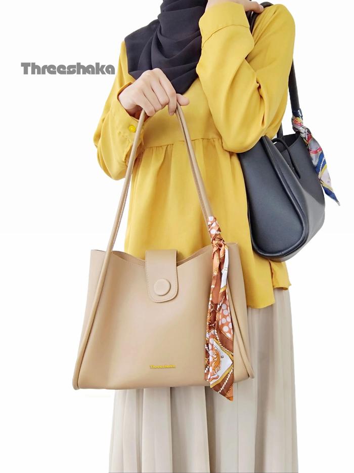Threeshaka - Tas Wanita Tote Bag Wanita Florida Lokal - Slempang Murah Hand Bag Premium Sling Bag Free Syall Twilly - Bl