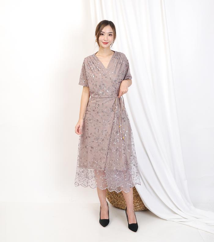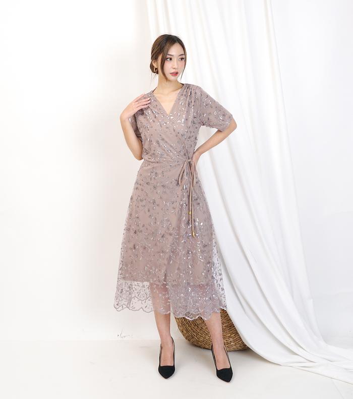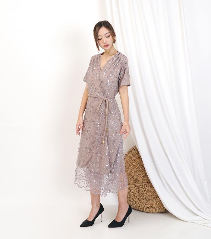 K2L-071 Dress Kondangan Dress Pesta Wanita Fashion Model Kimono Premium Style Korean Look Full Brukat Tulle Mix Mutiara