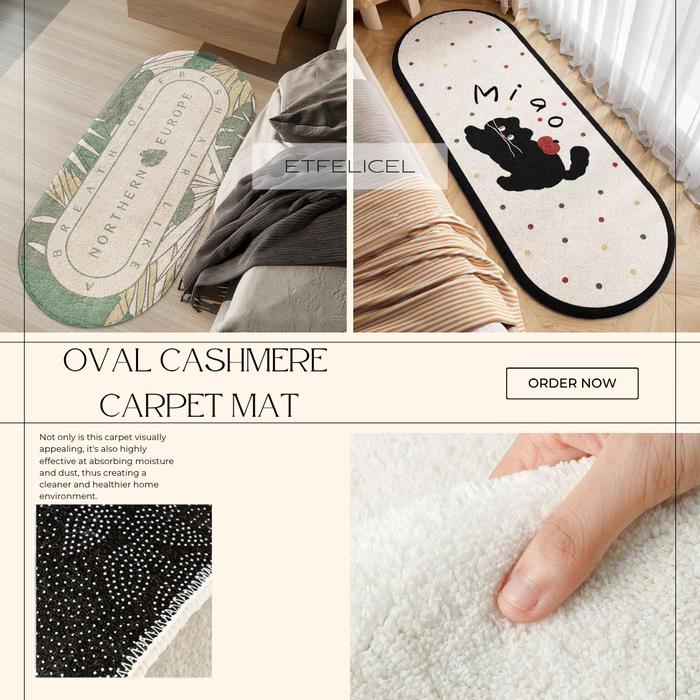 Oval Cashmere Carpet Mat / Karpet Keset Kasmir Panjang Lembut Bulu Tebal Halus Alas Kaki Anti Slip