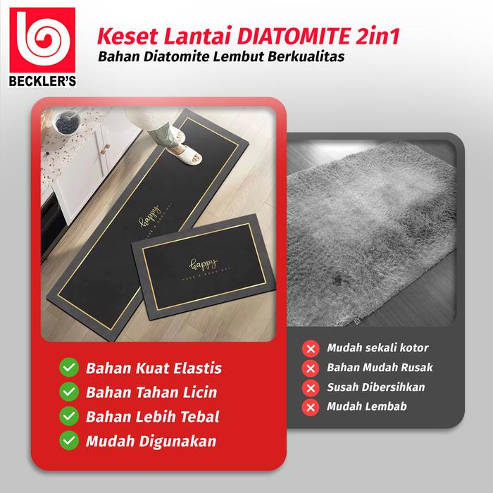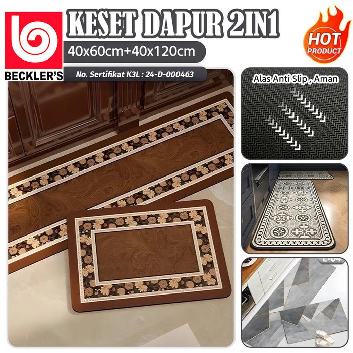(Beckler's) Keset Dapur 2in1 PREMIUM Anti Slip / Keset Kaki Uk 40x60CM & 40x120CM Bahan Polyester