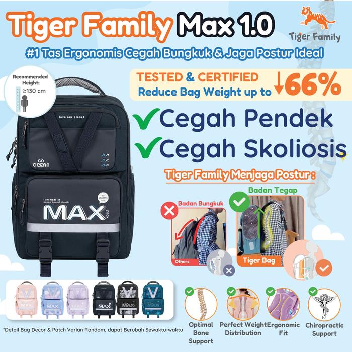 Max Pack 1.0 : Tiger Max Ergonomic Bag - Backpack Tas Ransel Remaja Untuk Kesehatan - Peace