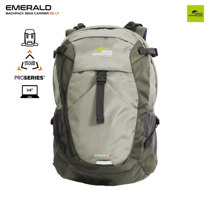 North Adventure Tas Ransel Backpack Semi Carrier 30 Liter - Emerald - Putih-Cream