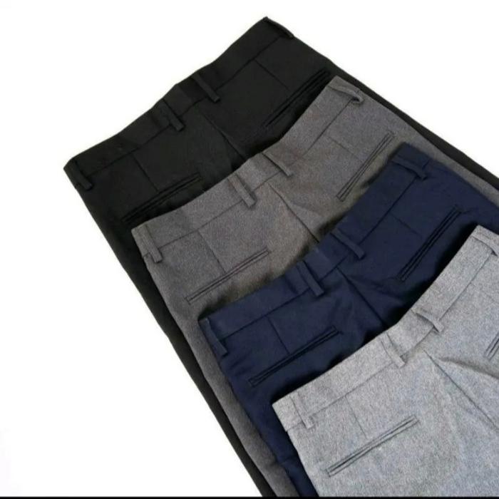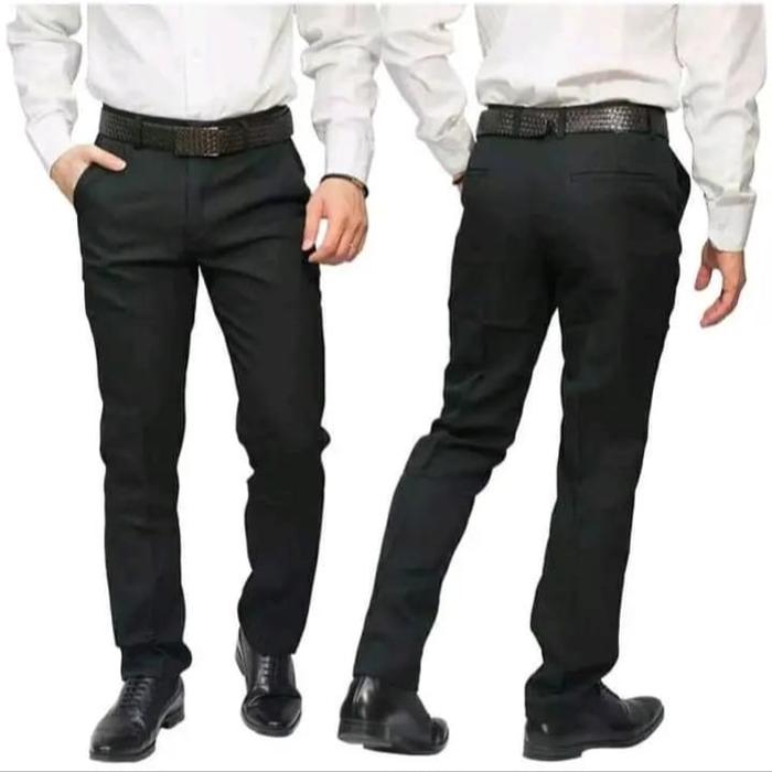 Celana Kantor Formal Pria Slimfit Hitam Panjang Kerja Bahan Kain Katun Lembut Premium Abu Muda Navy - Hitam, 27. Bb 45-
