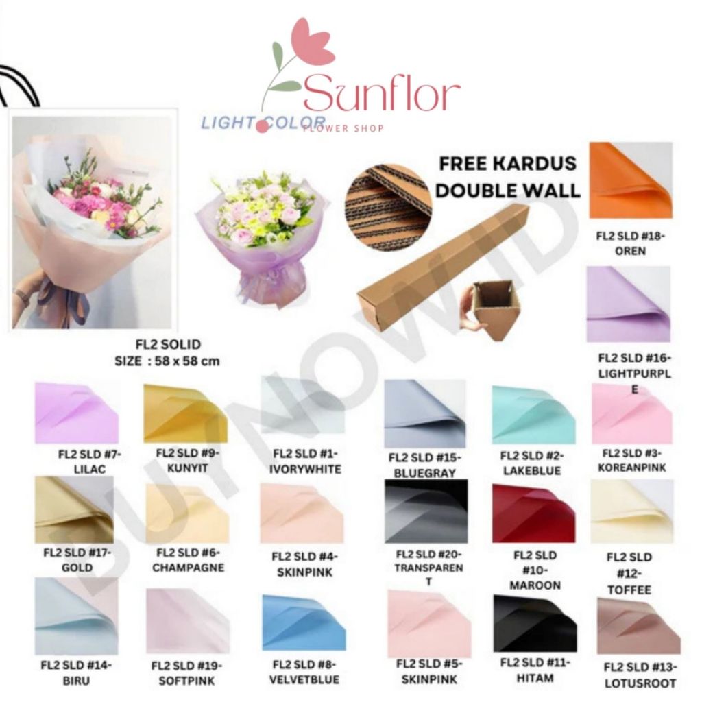SUNFLOR - (5 LEMBAR) FL2 SOLID Kertas Bunga Buket Warna Polos/Kertas Buket Bunga Florist Cellophane
