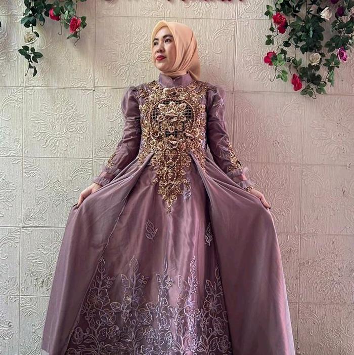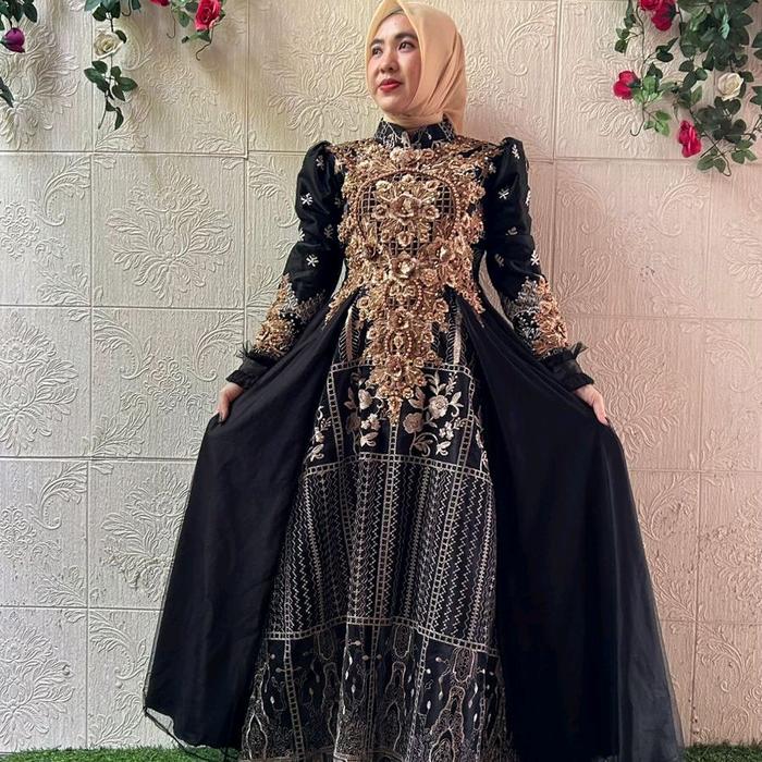 Dress Pesta Premium Brukat Tille Bordir - Hitam 1, M Ld 98