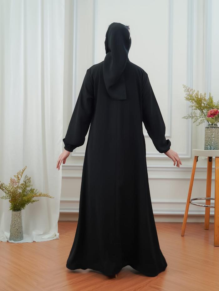 Abaya Turkey Wanita Putih & Jetblack Gamis Turki Hitam Polos Mewah Elegan Premium Busui Friendly - Hitam, S