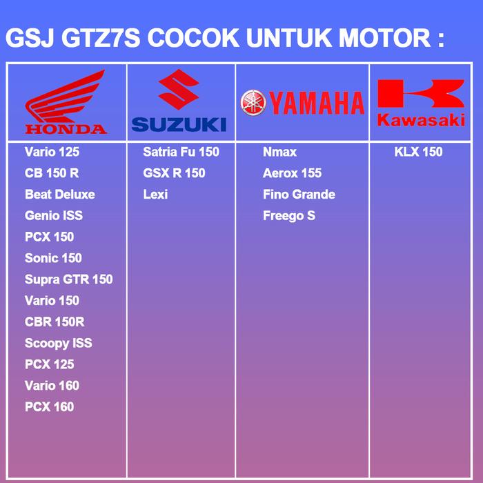 AKI MOTOR GTZ7S VARIO 125/150 BEAT DELUXE SCOOPY ISS CB150R NMAX SATRIA FU PCX 150/125 AKI KERING MF