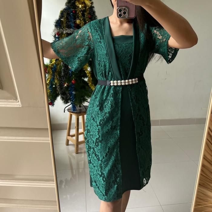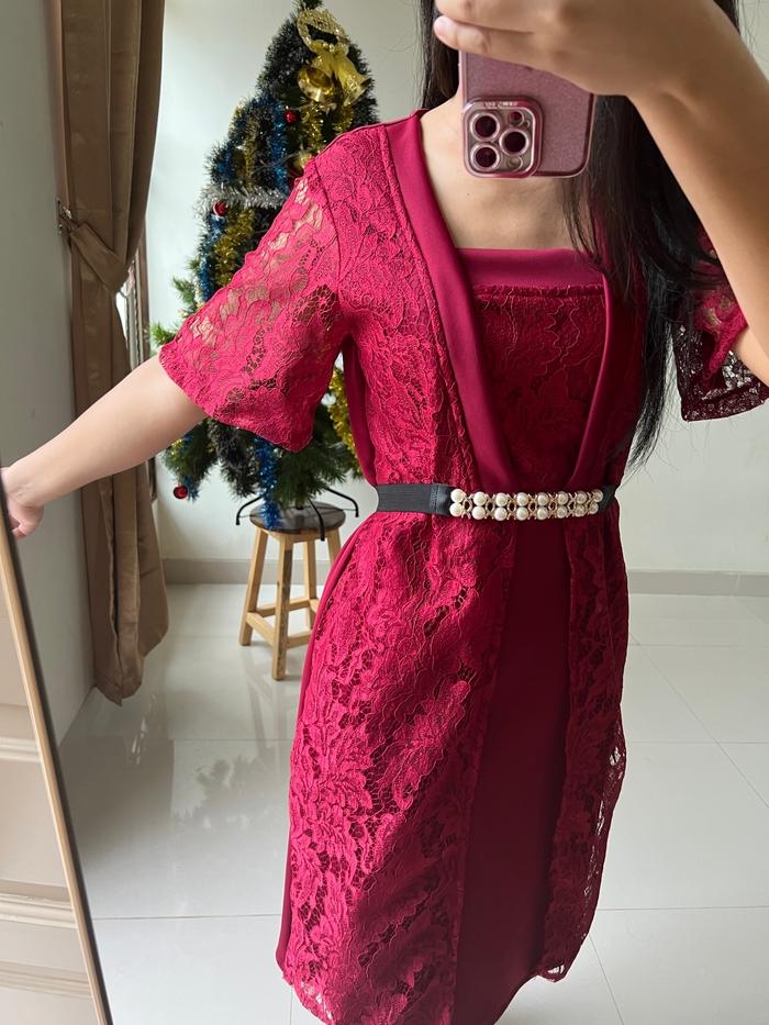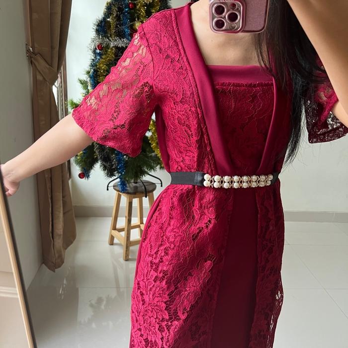 Althree Clothing - Ivanca Dress Kondangan Fashion Wanita Brokat Casual - Maroon, L