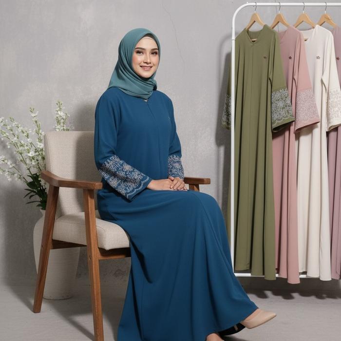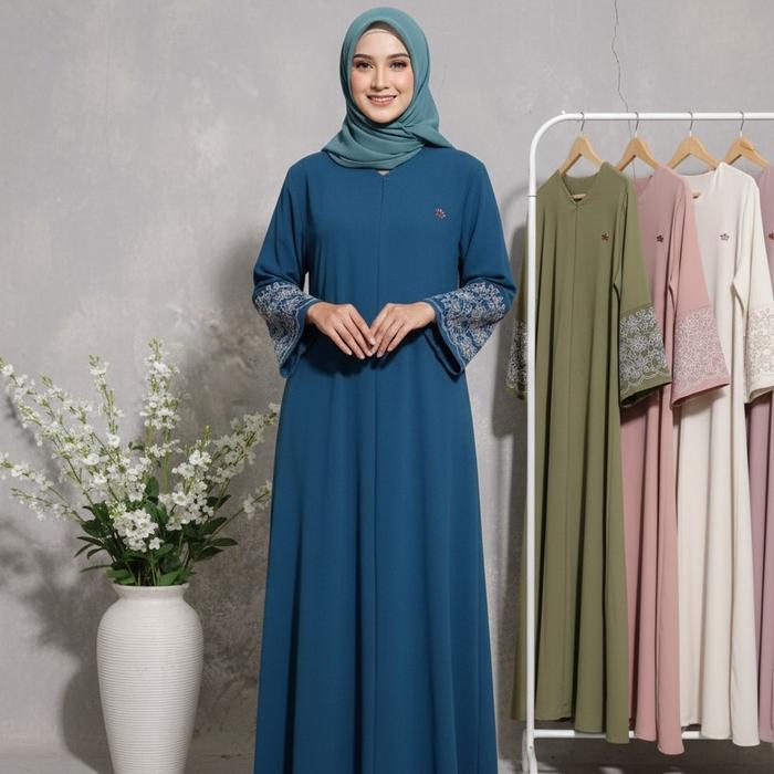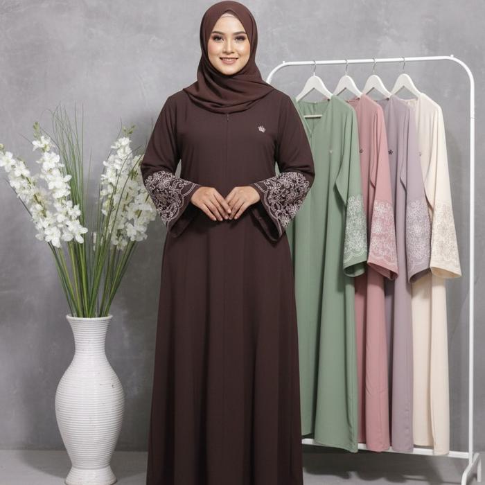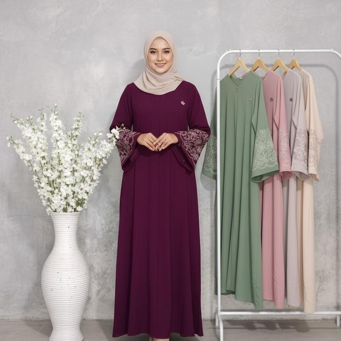 Dc - Gamis Abaya Turki Fashion Muslim Aksen Tangan Bordir Premium Dengan Pilihan Warna Elegan Dan Desain Modern - Burgun