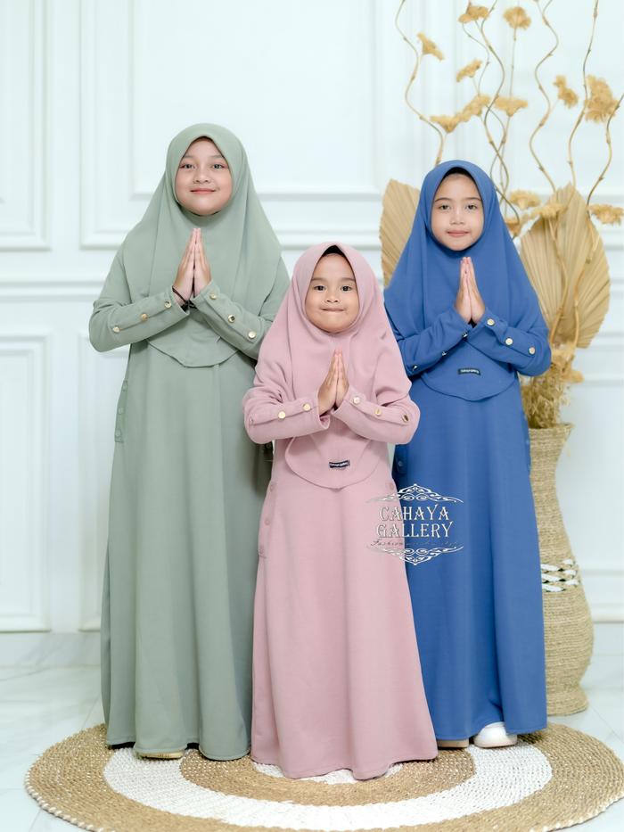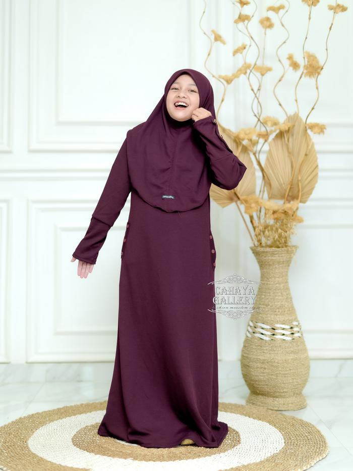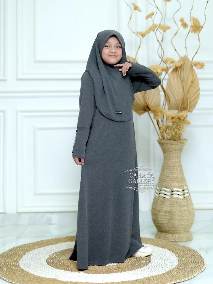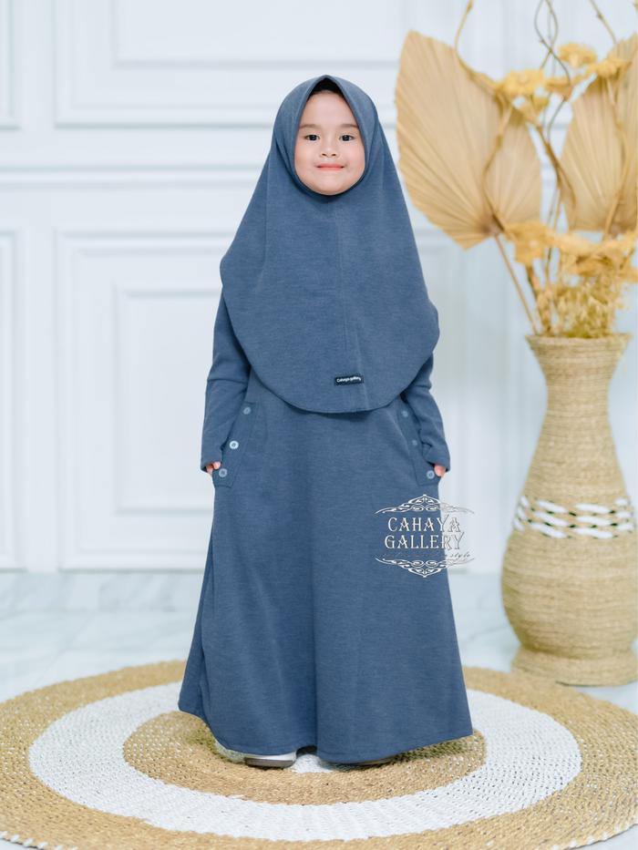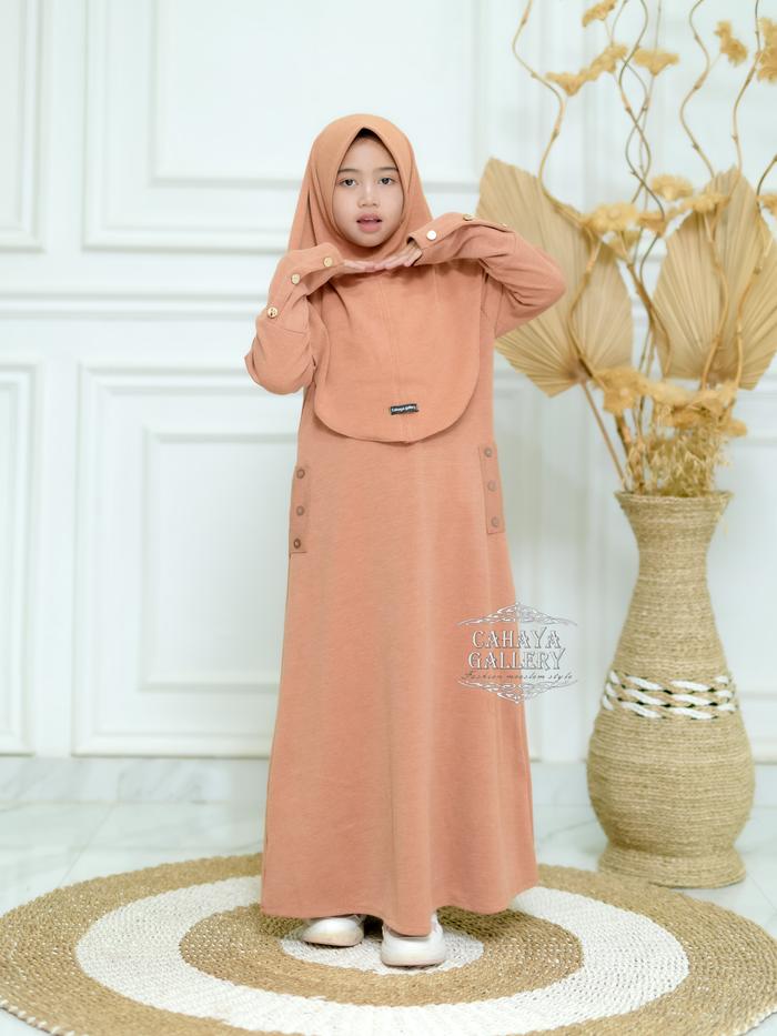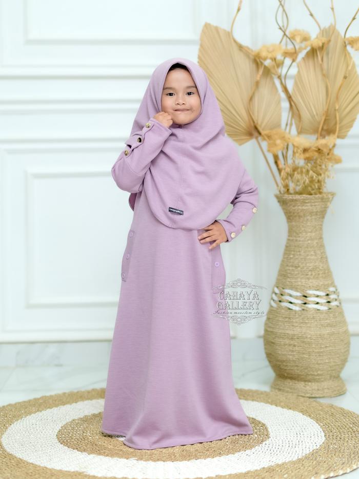 Cahaya Gallery - Keyra Anak 5-12 Tahun Set Hijab Dress Batwing Button Knit Premium - Gamis Anak Muslim Kekinian Baju Leb