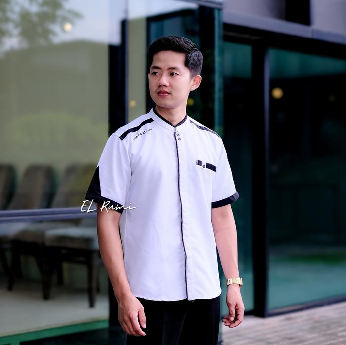 Koko Pria Dewasa Lengan Pendek Original Elrumi Motif Yisunsin Baju Muslim Putih Katun Toyobo Halus Adem - Coklat, S