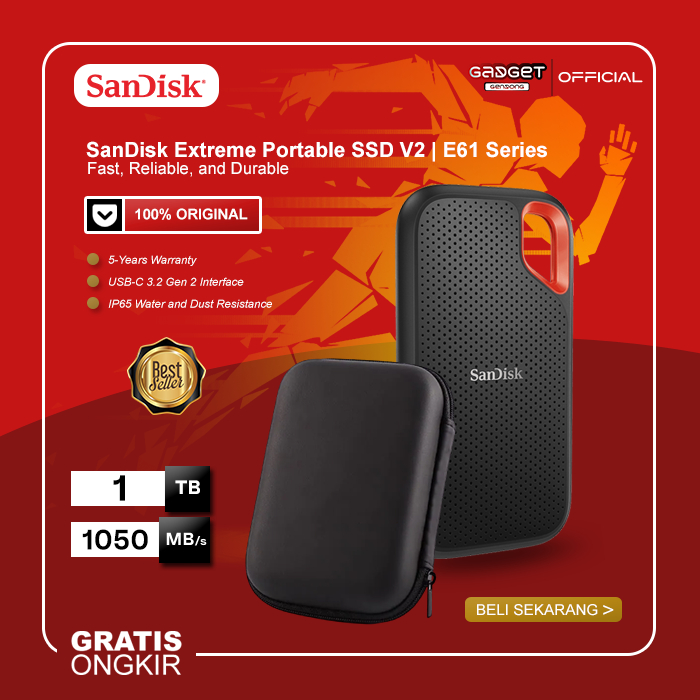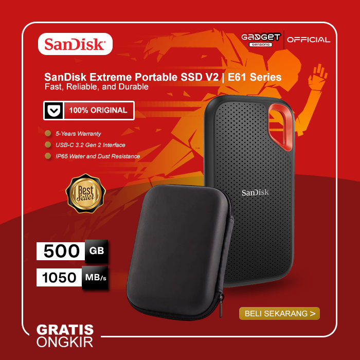 SSD External SanDisk Extreme rtable Storage Eksternal E61 - 4TB 2TB 1TB 500GB - Free uch Case