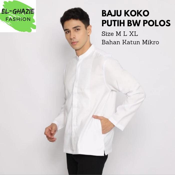 Baju Koko Putih Polos Lengan Panjang Dewasa / Baju Koko Murah - M