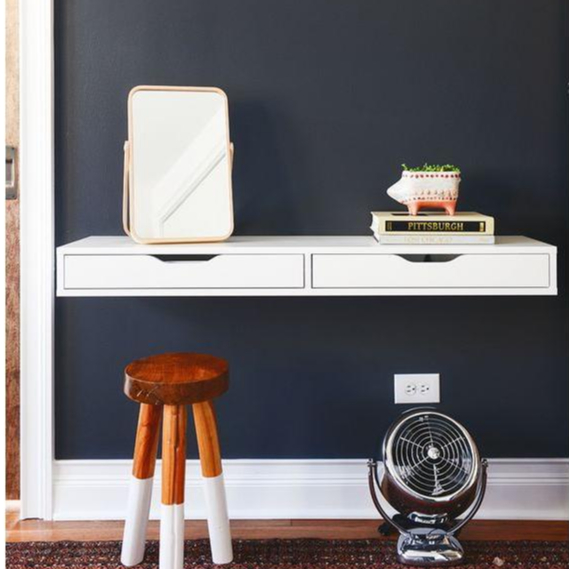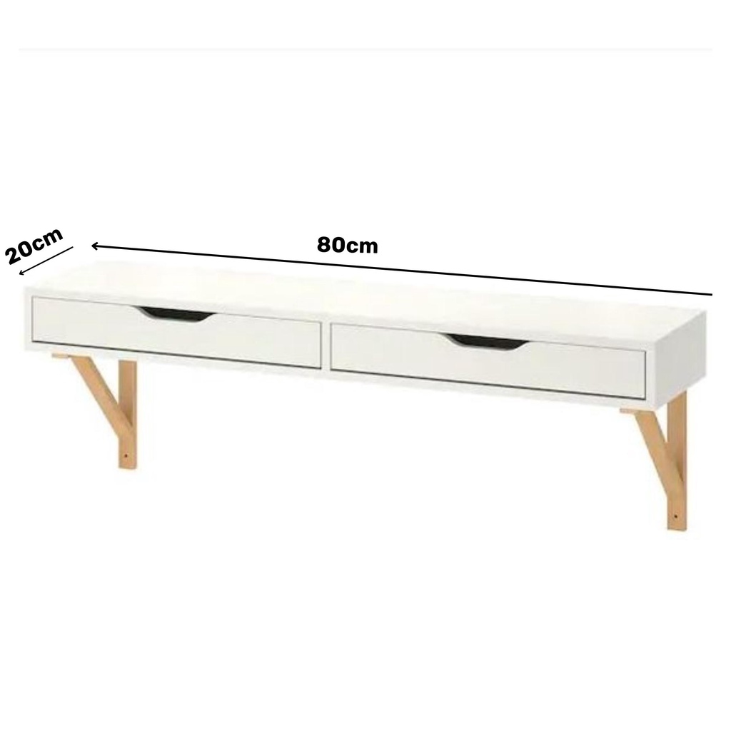 Rak Kosmetik Tempel Dinding 80x20cm dengan 2 Laci Penyimpanan Ambalan Gantung Dekorasi Kamar Minimalis
