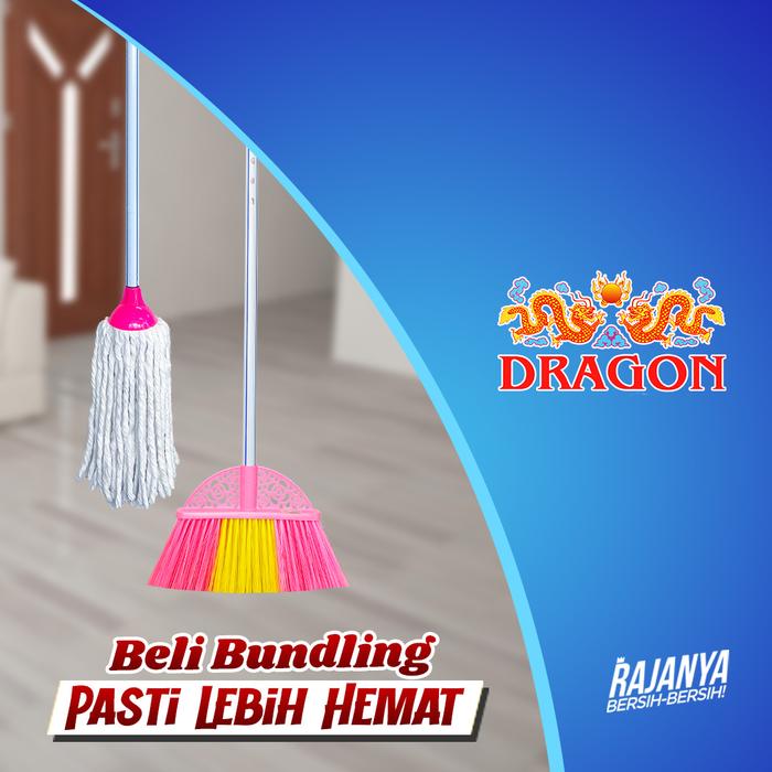Termurah Dragon Paket Hemat Bersih 4 Sapu Lantai Batavia Warna + Mop Pel Obor Plastik Pkt012