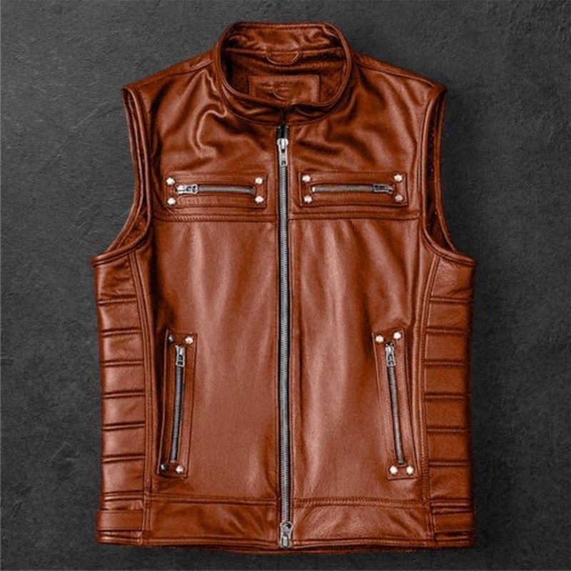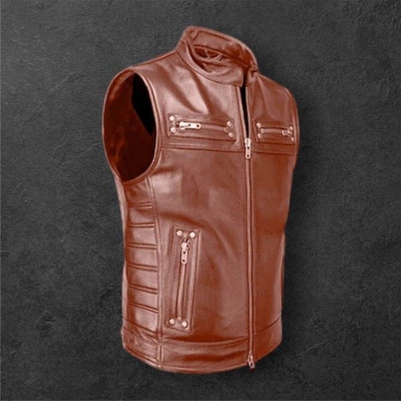 Rompi Kulit Pria/Rompi Turing/Rompi Bikers/Rompi Pelindung Dada Anti Air Cocok Semua Musim