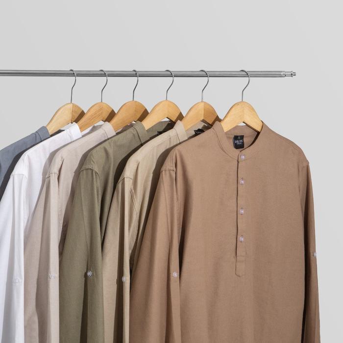 Byblank Qatar Kemeja Koko Lengan Panjang - Kemeja Linen Premium - Brown, S