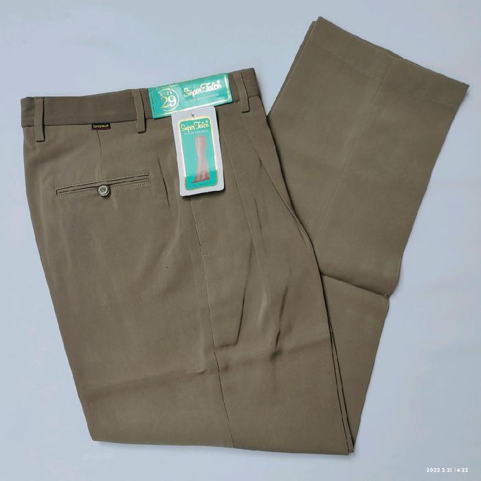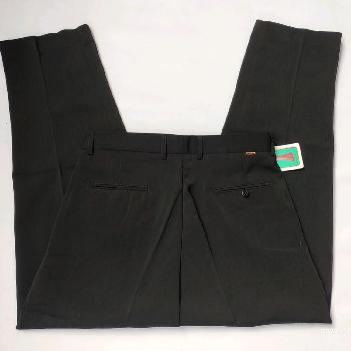 Celana Kerja Pakai Rampel Reguler Polos Panjang Standar Pria Hitam Tebal Formal Kantor Slim Fit Chino Kain - Hitam, 28