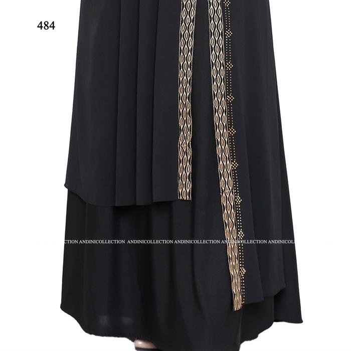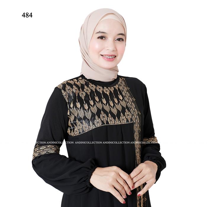 Andinicollection Abaya Turkey 484 Gamis Wanita Hitam Muslim Bordir Mewah - Hitam, M