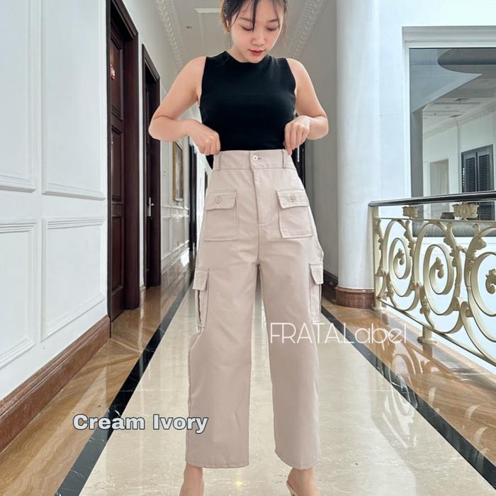 Frata | Ramadhan CleansaleAiko Cargo Highwaist Premium Pants | Celana Kargo Highwaist Premium Panjang Wanita - Cream I