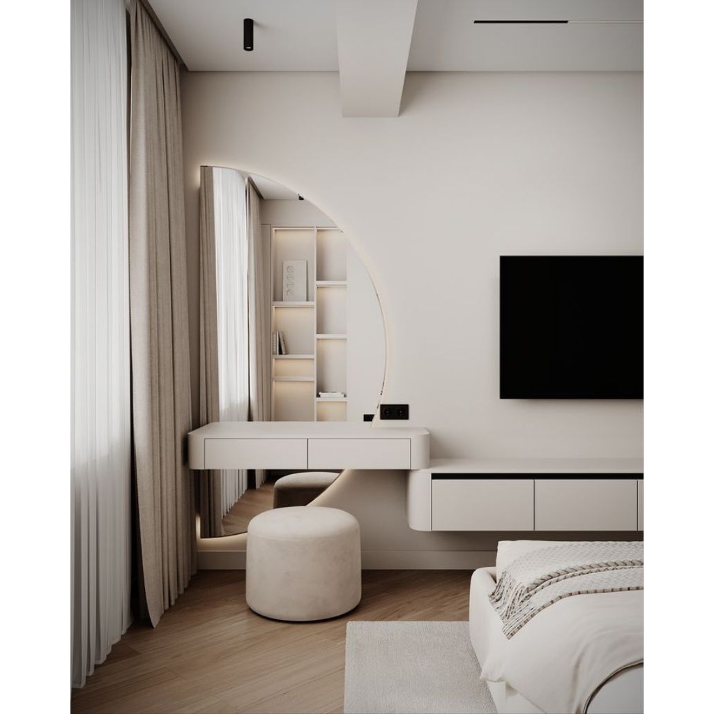 Meja rias lengkung minimalis meja lengkung gantung