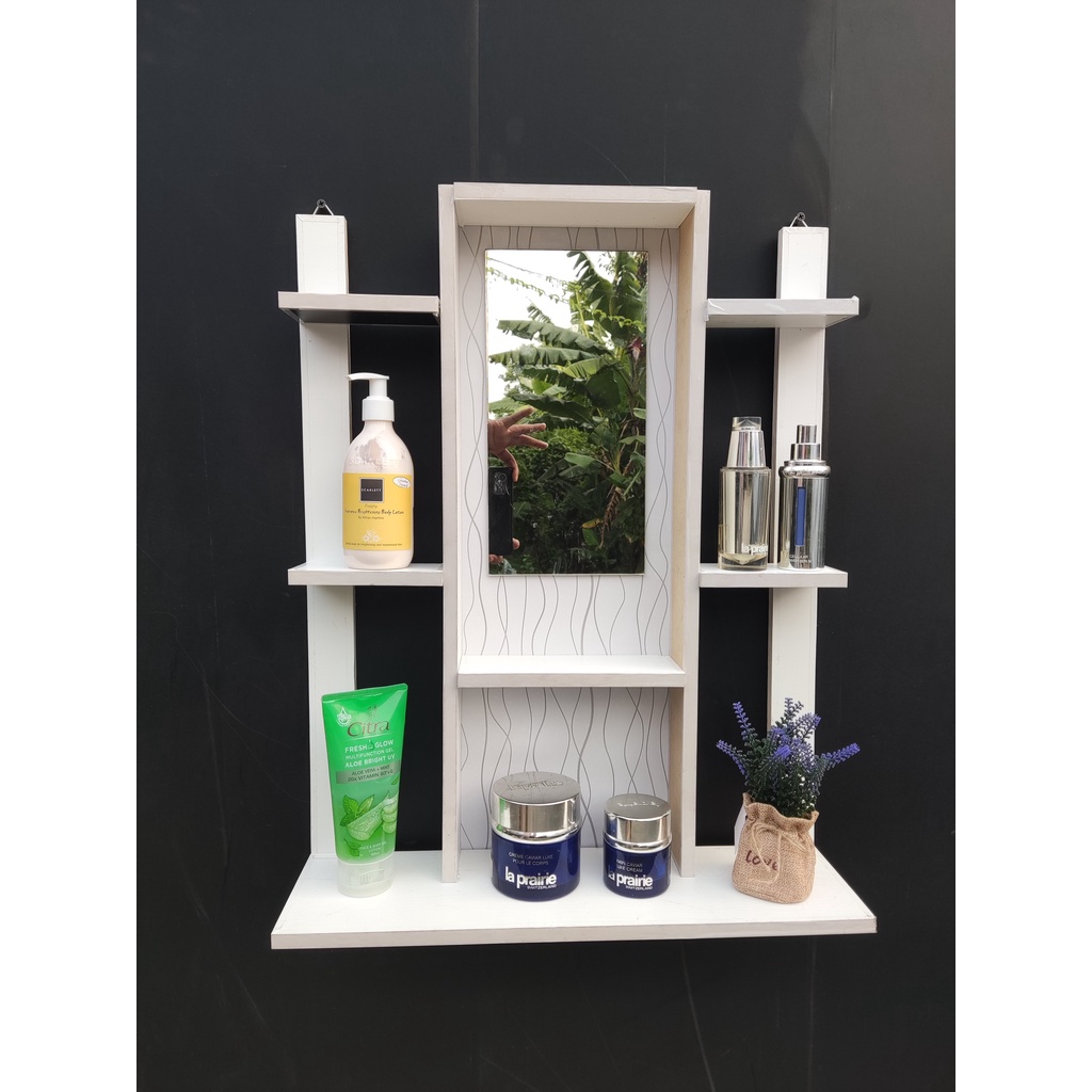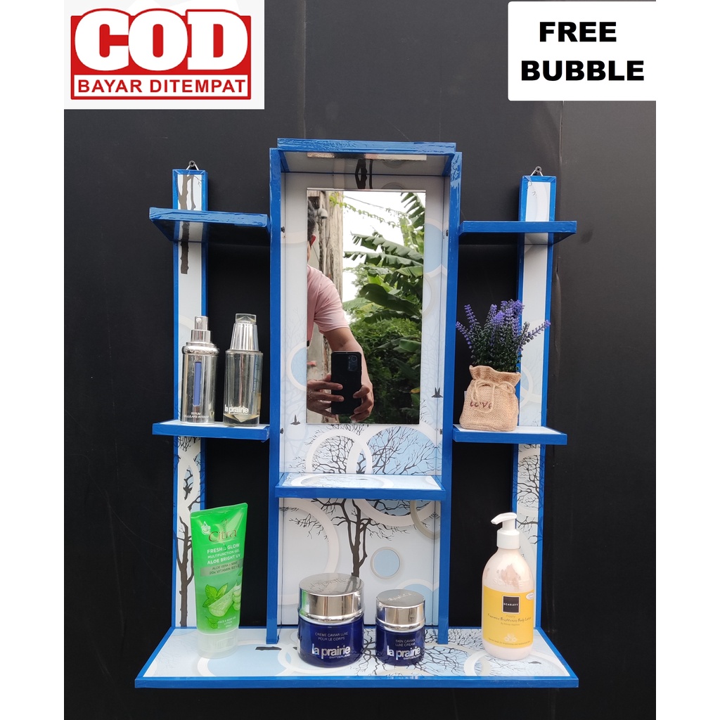 RAK KOSMETIK / RAK RIAS GANTUNG KAYU KUAT DAN MURAH 65x50cm ( VIRAL ) FREE KACA & BUBBLE X2
