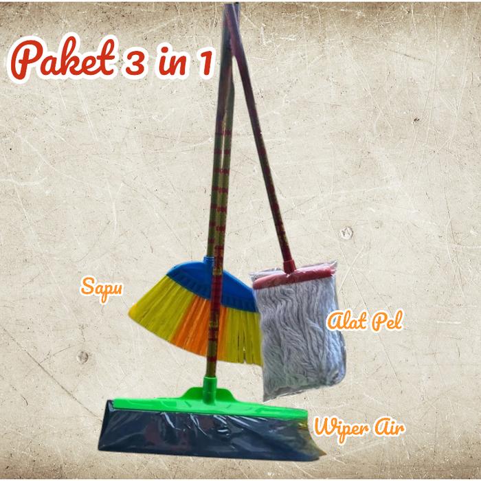 Paket Sapu 3 In 1 Sapu, Pel, Wiper Termurah 1 Set Alat Kebersihan Murah - 1 Set 3In1