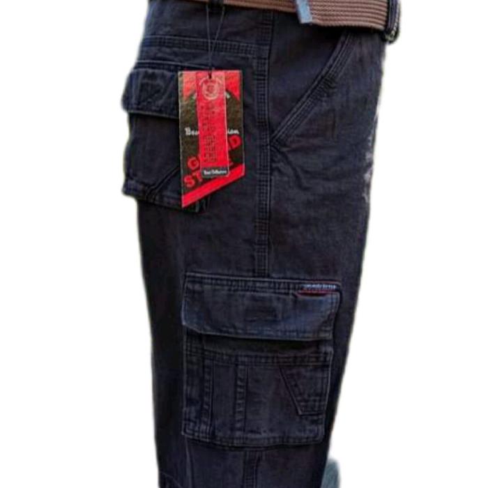 Celana Pendek Cargo Pria Katun Tebal Denim Santai Bawah Lutut Kain Nyaman Dewasa Distro Jeans - Coklat Tua, 27/28