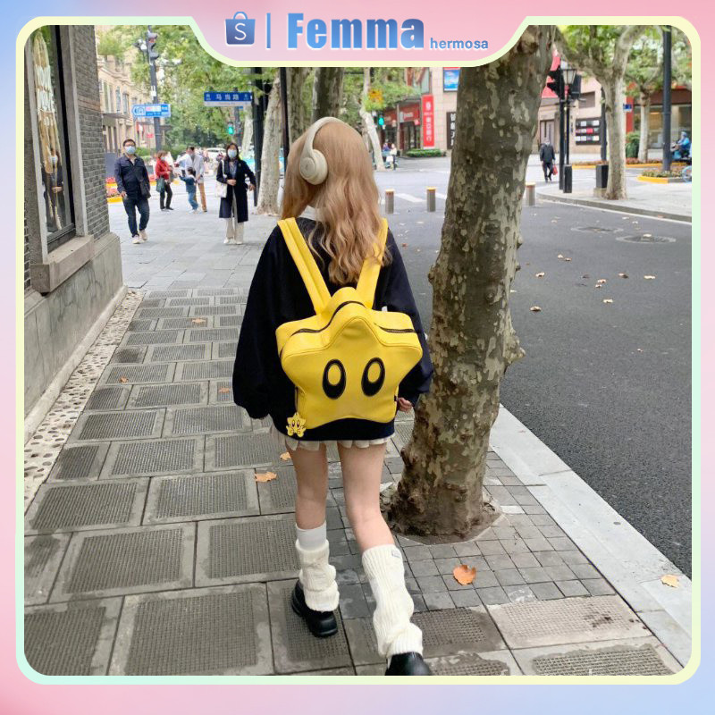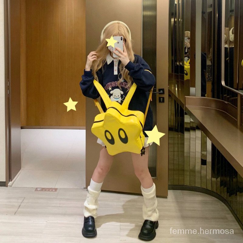Bintang pentagram mata besar backpack bahu ganda ransel tas sekolah yang lucu fashion korea bag tas ransel wanita Import