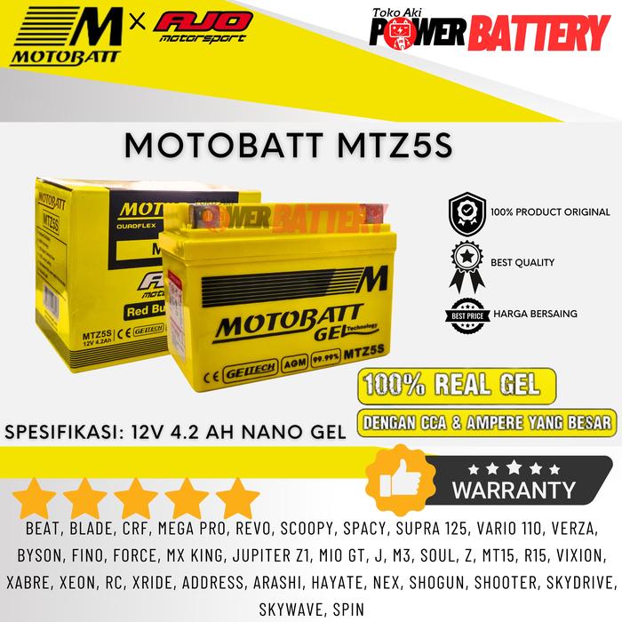 AKI MOTOR MOTOBATT MTZ5S GTZ5S BEAT MIO SCOOPY VARIO 110 JUPITER MX, VINO
