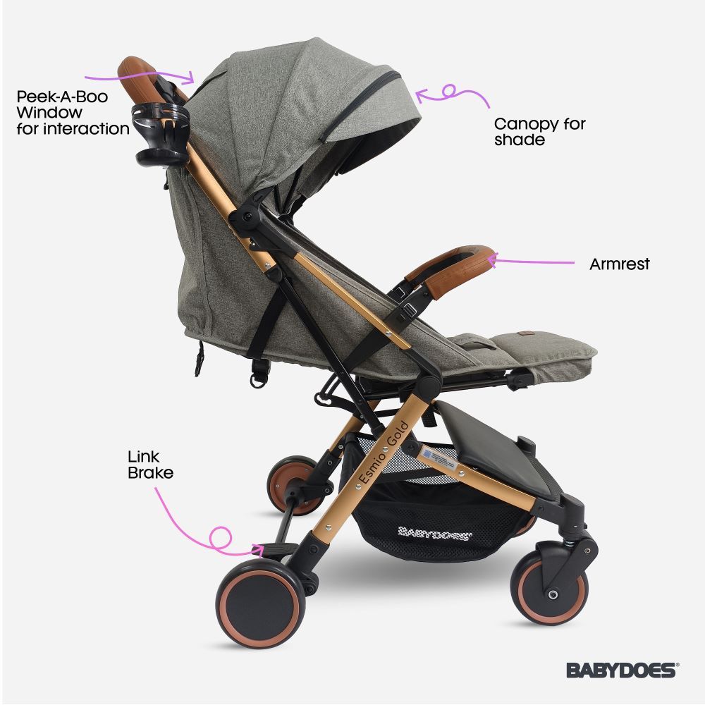 Babydoes Esmio Gold Stroller Bayi Compact Aluminium