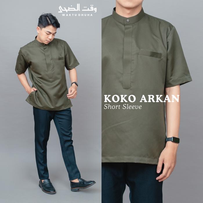Waktu Dhuha - Koko Atasan Muslim Lengan Pendek Bahan Toyobo Super Adem Koko Arkan - Army, M