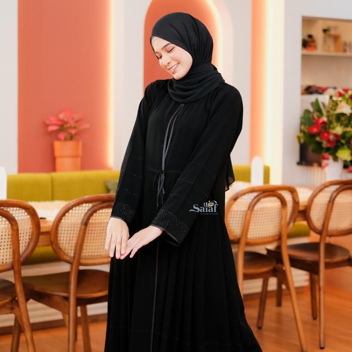 Gamis Abaya Hitam Turkey Maxi Dress Turki Simple Muslim Wanita Dewasa Arab Mewah Umroh Basic Bordir Syari - Haura Hitam