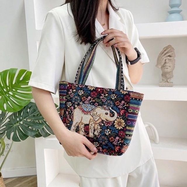 Opiobags Totebag Motif Gajah Wanita / Tfw 66 Kanvas Tote - 18, M
