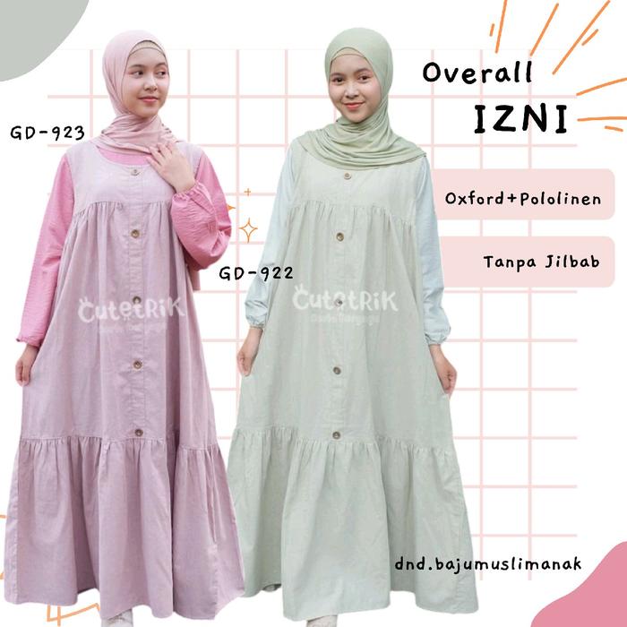 Cutetrik Overall Izni Baju Muslim Gamis Dress Panjang Anak Remaja Tanggung Linen Gd-922 Gd-923 - Gd-923, Sb 10 10-11 Ta