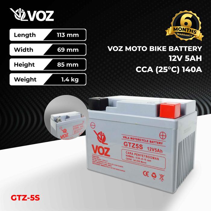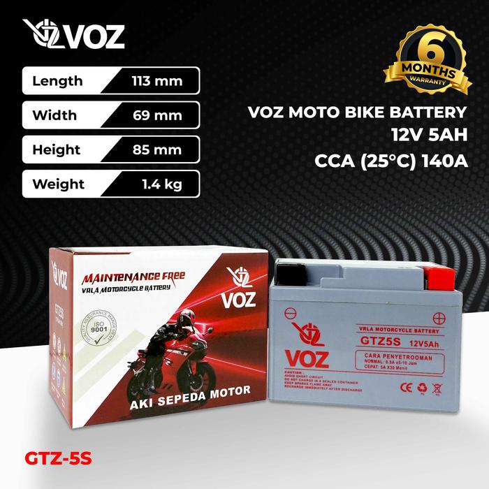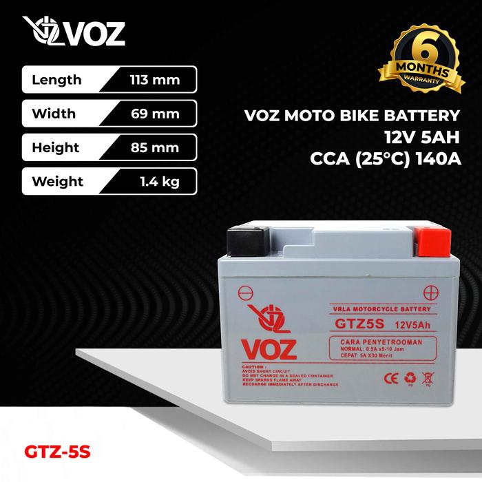 VOZ AKI MOTOR GTZ5S 12V 5AH - BATERAI AKI MOTOR