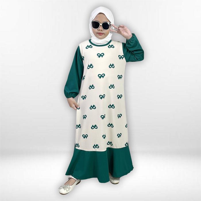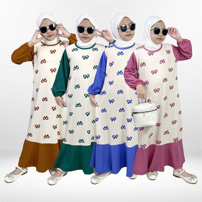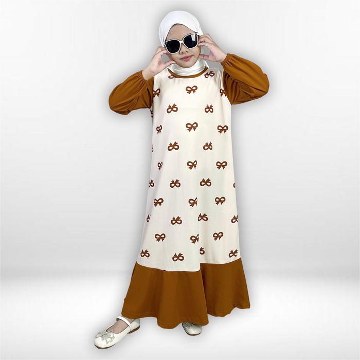 Gamis Anak Sofia Gogofashion 830 Bahan Soft Knit Motif Pita - Caramel, S