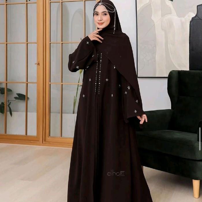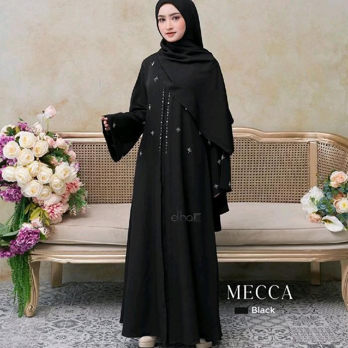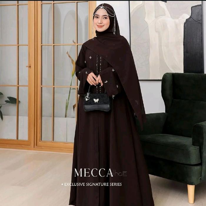 Gamis Wanita Mecca Dress Abaya Turkey Mahogany Ceruty Babydoll Mix Payet 2026-Muslim Lebaran Pesta Mewah Kondangan Arab