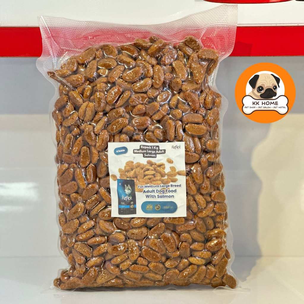 Reflex Plus Medium & Large Adult Salmon Dog Food Repack 1kg - Makanan Anjing Dewasa dengan Salmon, Protein Hewani 81 PERSEN, O
