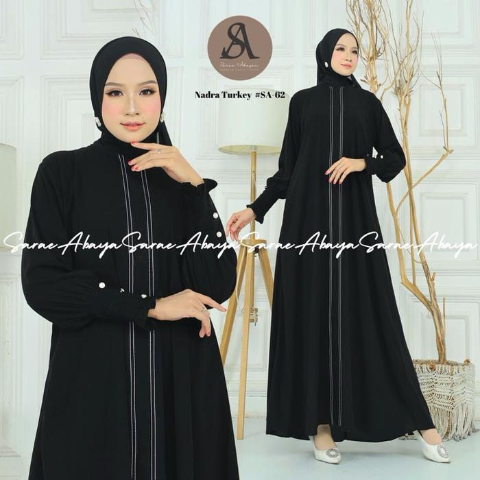 Sarae Abaya Turkey Premium Nadra Sa-62 Gamis Jetblack Pesta Arab Turki Cantik Muslim Mewah Elegan Dress Wanita Lebaran H